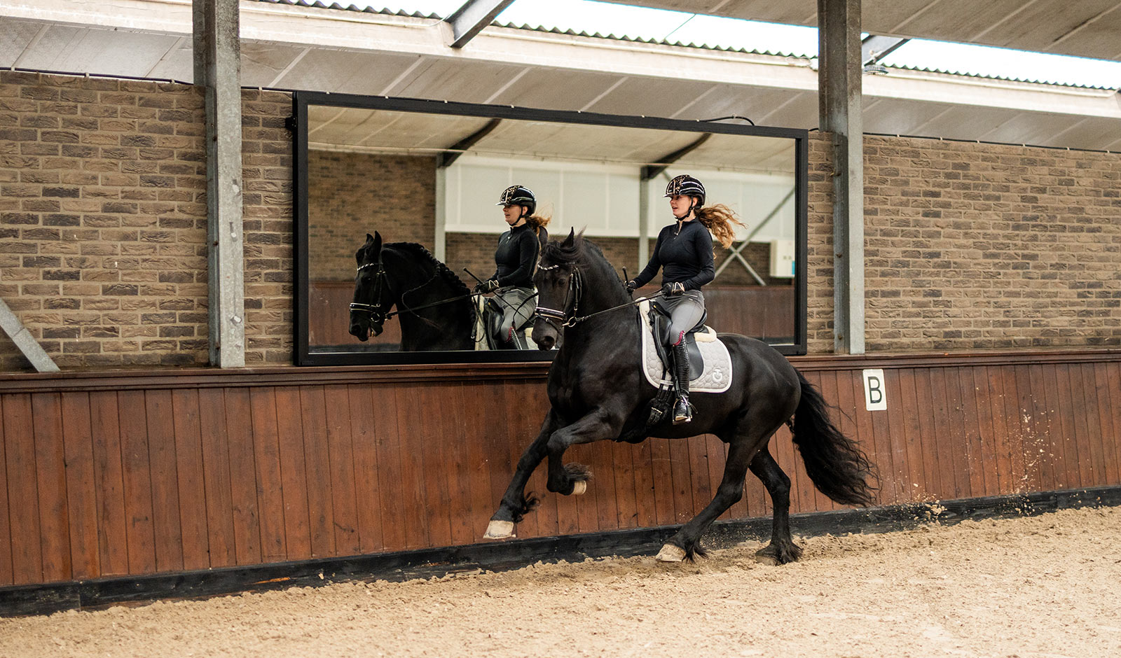 We zijn erg tevreden met onze nieuwe dressuurspiegels. Ze helpen onze ruiters echt verder bij het leren aannemen van de juiste rijhouding. Verder oogt de ruimte ook groter.