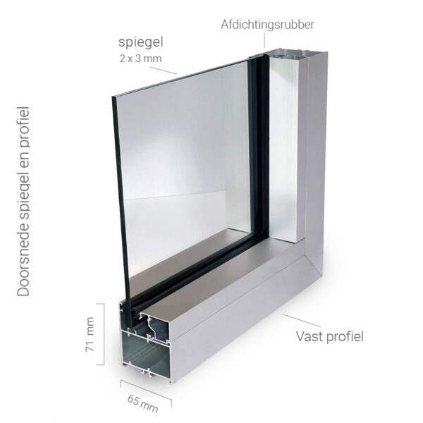 Bij een langere spiegelwand kunnen hinderlijke vertekeningen ontstaan, zeker bij onzorgvuldige bevestiging. Verspringingen in de wand zijn vaak een belangrijke oorzaak. Wij beperken dit tot een minimum, zodat u optimaal van uw spiegel kunt genieten. Dit doen we door de achterconstructie zorgvuldig te monteren en het profiel goed uit te lijnen.