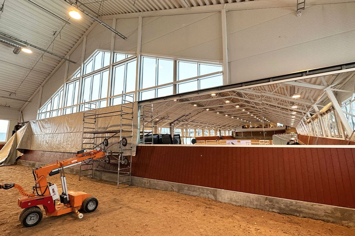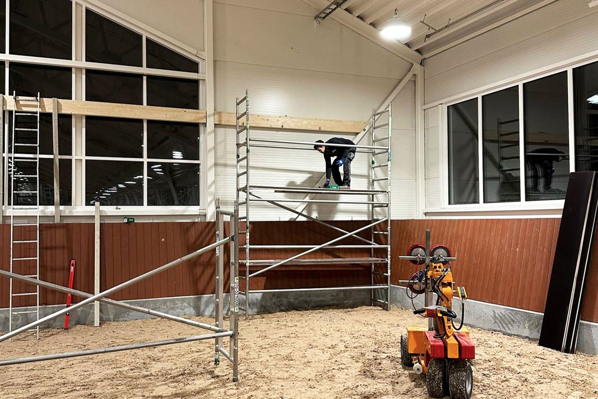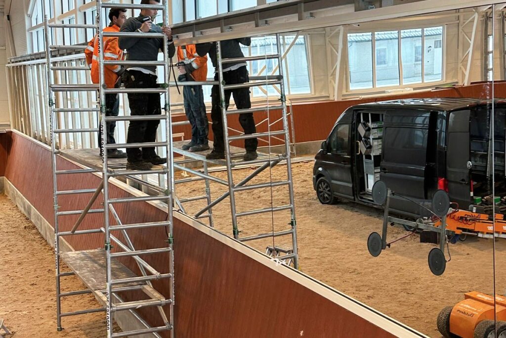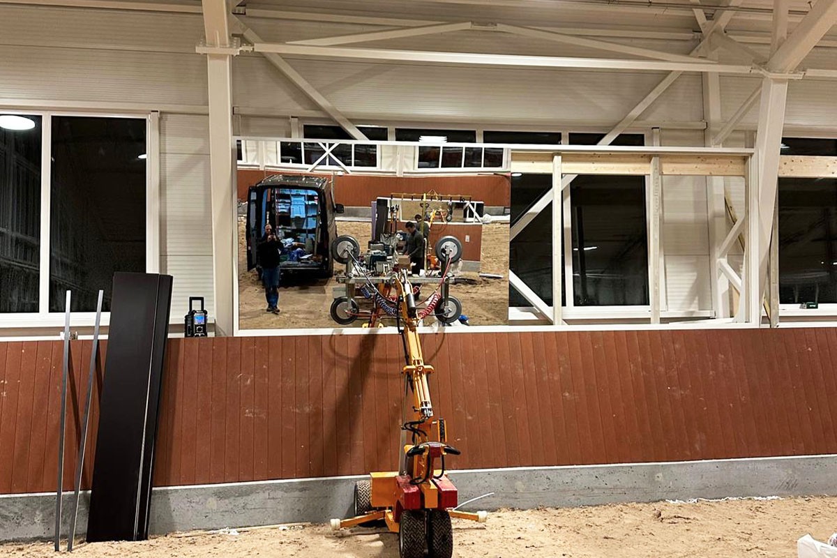 Het eindresultaat is een hoogwaardige spiegeloplossing die zowel technisch als visueel perfect aansluit op deze rijhal. De spiegelwand en hoekspiegels geven de ruiter een helder en rustig beeld vanuit meerdere hoeken, terwijl de constructie stabiliteit en duurzaamheid garandeert. Zo ontstond in deze Noorse rijhal een veilige, doordachte en professioneel afgewerkte oplossing voor intensief gebruik.